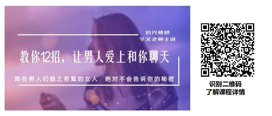 如果你是前一个老板娘的状态,如果你想要拓展聊天思维,那么辛又老师《脱单精品课》中讲聊天的一节课,绝对是你拓展聊天思维、提升聊天水平必不可少的第一步。