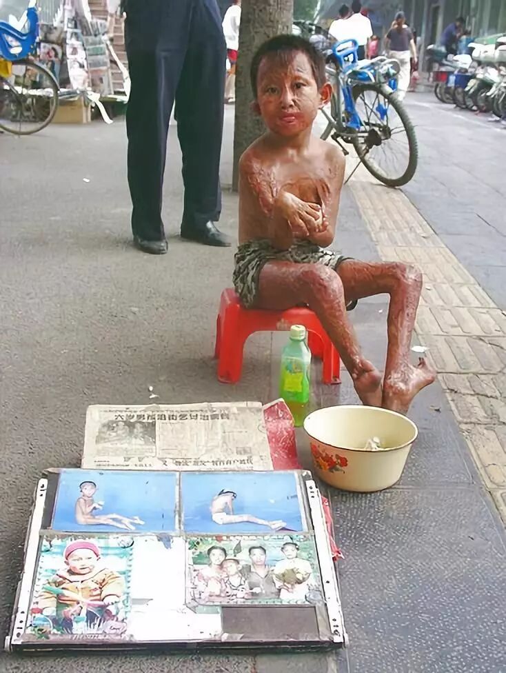 他们每天饿着肚子被迫去向路人乞讨,为了用来多讨几块钱,人贩子故意用刀子把他们的身体划的伤痕累累,旧伤痊愈了再制造出新伤,为得就是用孩子那带血的伤口去博得路人的怜悯,从而换取更多的不义之财,他们嫌刀子划的不够狠,甚至还用硫酸烧孩子的身体,那个被人贩子用硫酸烧的痛苦难忍的小女孩用稚嫩童音哀求着:“叔叔,求你别用硫酸了,还是用刀子割吧。