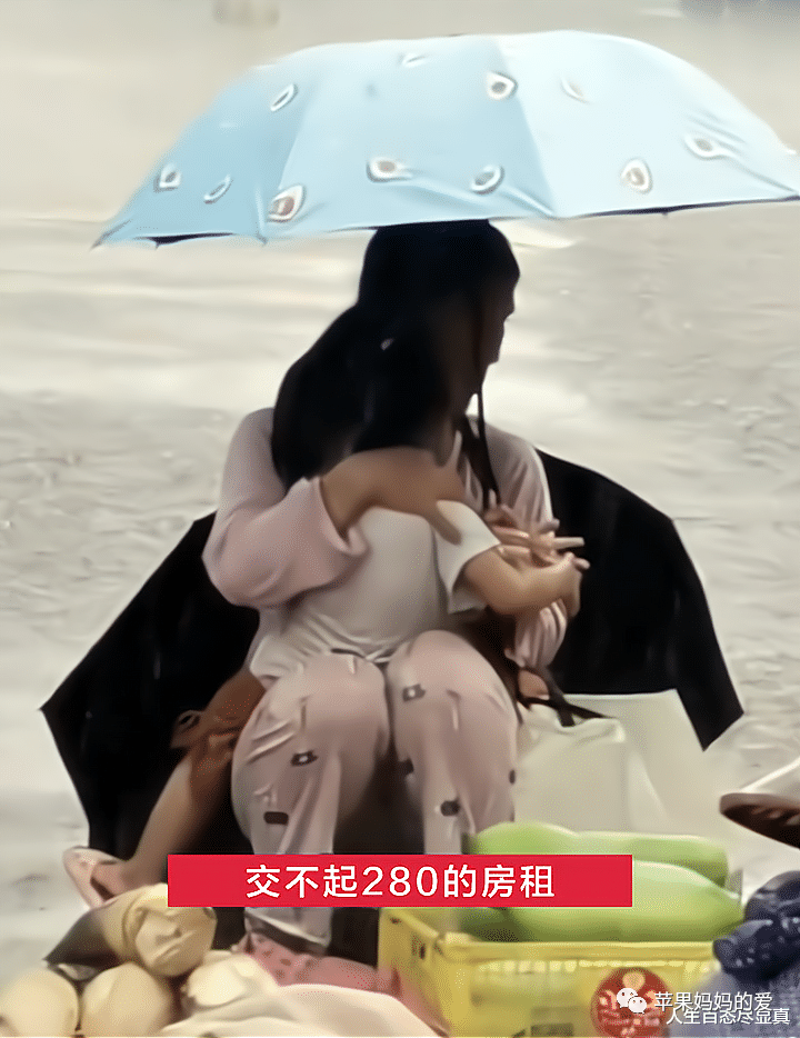 单亲妈妈顶着狂风暴雨卖菜,抱着孩子泪流满面,交不起280的房租 |