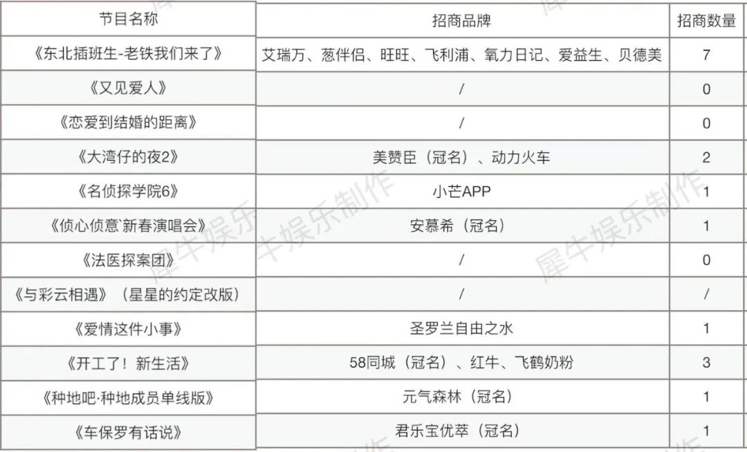 从招商体量上看,最近除了《东北插班生-老铁我们来了》因模式创新吸引到了7个金主的加码,其它售后综艺项目的招商数量都仅有1到2个,金主们对于售后综艺仍然不敢大规模投放。
