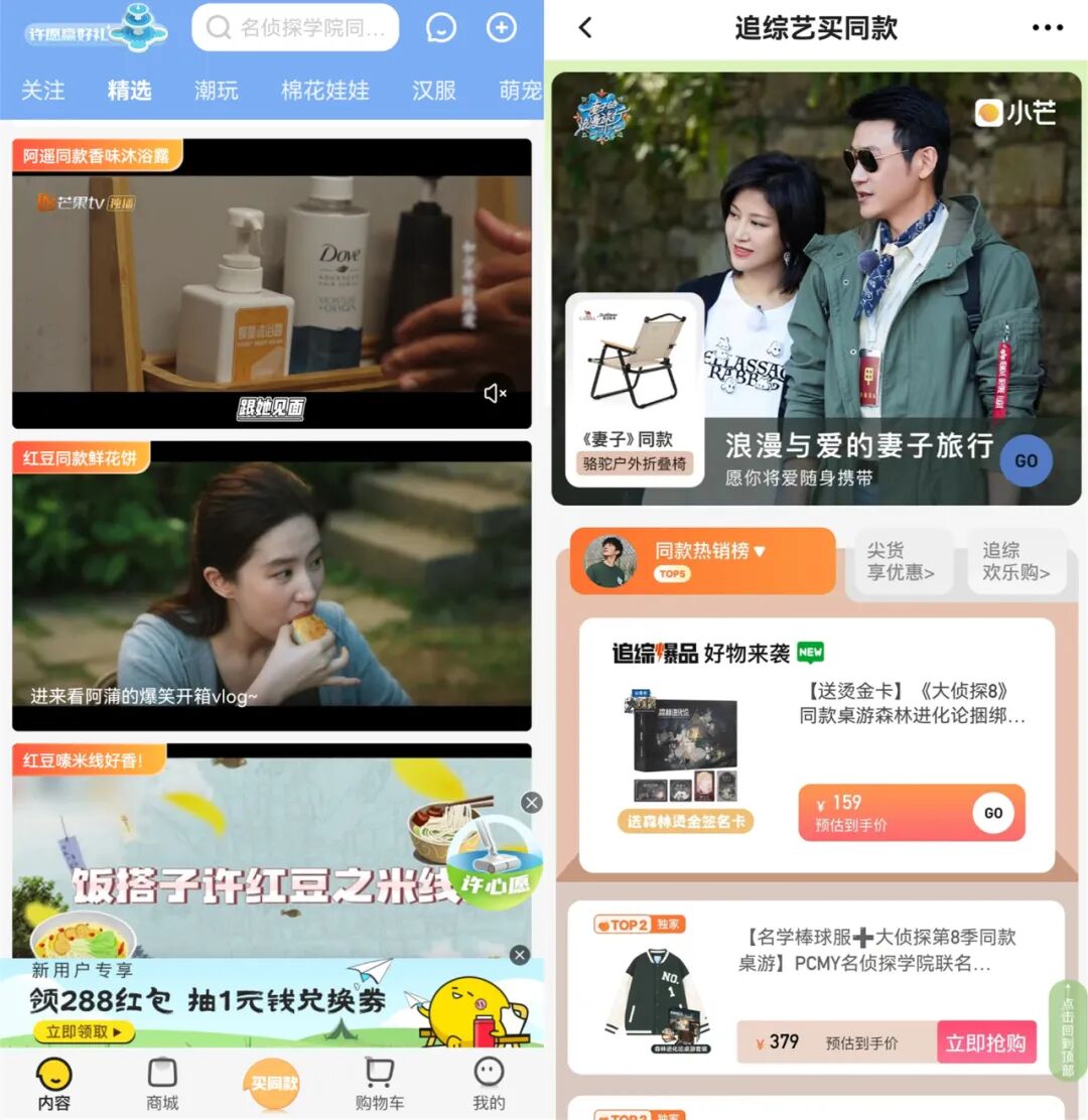 这并非TVB独家的打法,事实上,长视频领域做带货试水的并不在少数。比如芒果TV的小芒电商,算是平台侧尝试中走得比较远的,特色就在于结合平台IP,打出了“新潮国货”的独特心智,每年还会在传统节日有晚会类露出。
