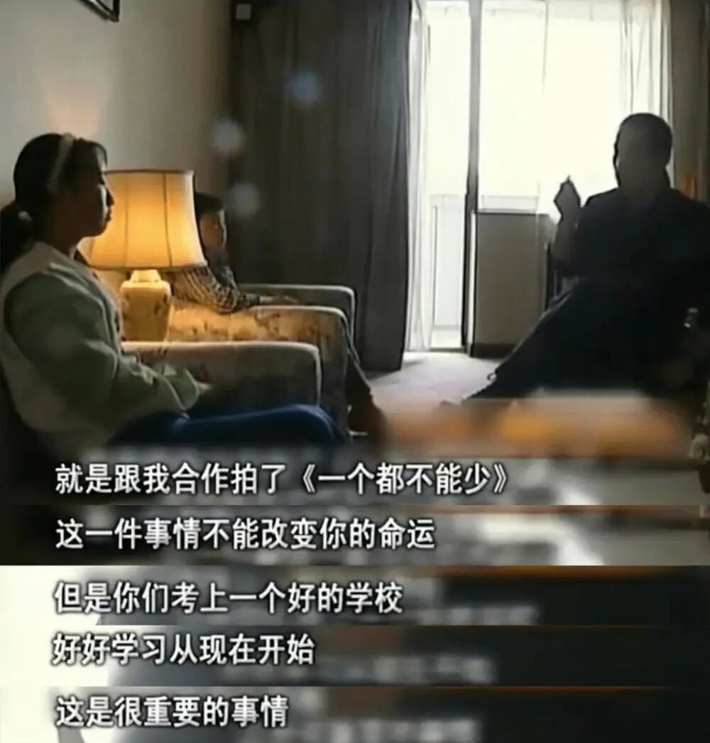 他偶然间看到一部小说《天上有个太阳》,被小说里女主人公的坚强和执着所感动,当即决定把这部小说翻拍成电影——《一个都不能少》。