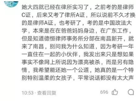 另一种说法亦出现在讨论中。28日,在社交平台知乎名为“如何看待南昌红谷滩女孩子大街上被陌生人杀害”的话题下,一位匿名用户称其通过沈芸本科时的学妹了解到,万某弟是沈芸接手的第三个案子的当事人,因为对案子不满而起了歹。该博主亦对万某弟的行凶过程提出了质疑。