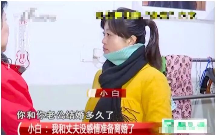 小白一直说着抱歉的话,可这有什么用啊?你说你也是有家庭的,有什么资格和别的男人谈感情呢。记者:“你和你老公结婚多久了?”小白:“结婚一年了。”记者:“有孩子没有?”小白:“没有,总共加上谈对象是两年半吧。说起他来呢,怎么说呢。实际上是,我们合不来已经很久了。”