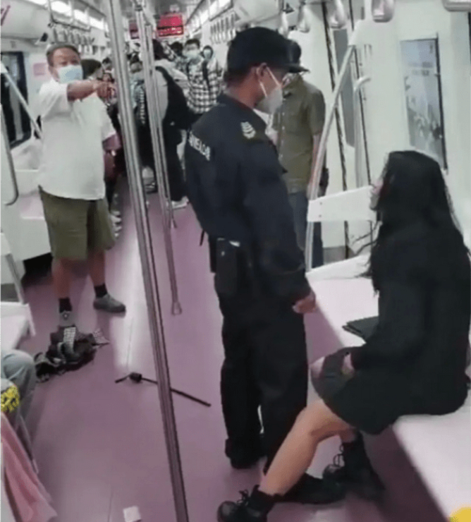 有乘客劝他们别吵了,这个女的就开始无差别攻击,骂视线以内的所有人。
